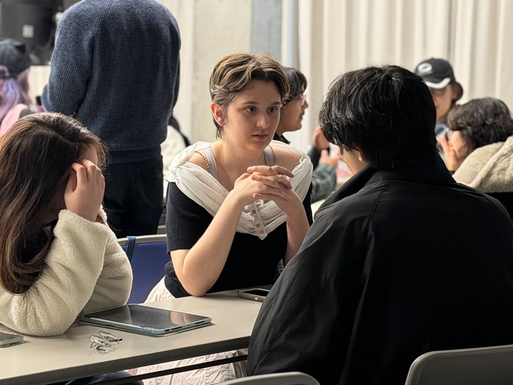 Late last month a group of students from the Fashion Institute of Technology (FIT) in New York visited the Kyoto Seika University campus to learn about our programs and participate in Duncan Brotherton’s Design English class. Students were first treated to a brief introduction of the class before breaking into groups where they discussed interests, shared examples of their work, and even made a series of sketches of their conversation partners.