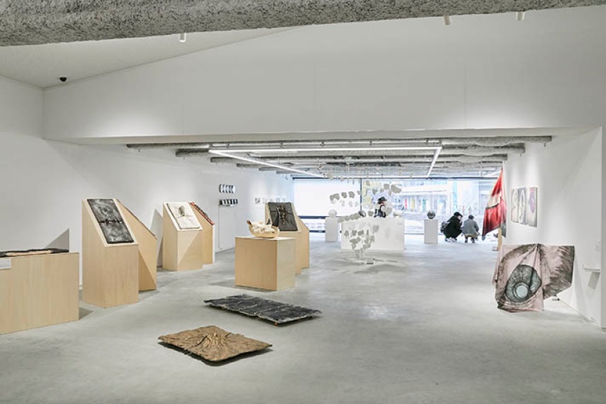 「京都精華大学ギャラリーTerra-S」では、本学主催の企画展覧会や所蔵品展、在学生が自ら企画する申請展など、年間を通じて多様な展覧会を開催しています。ツアーでは、学芸員が展覧会に関する説明を交えながらギャラリーをご案内します。