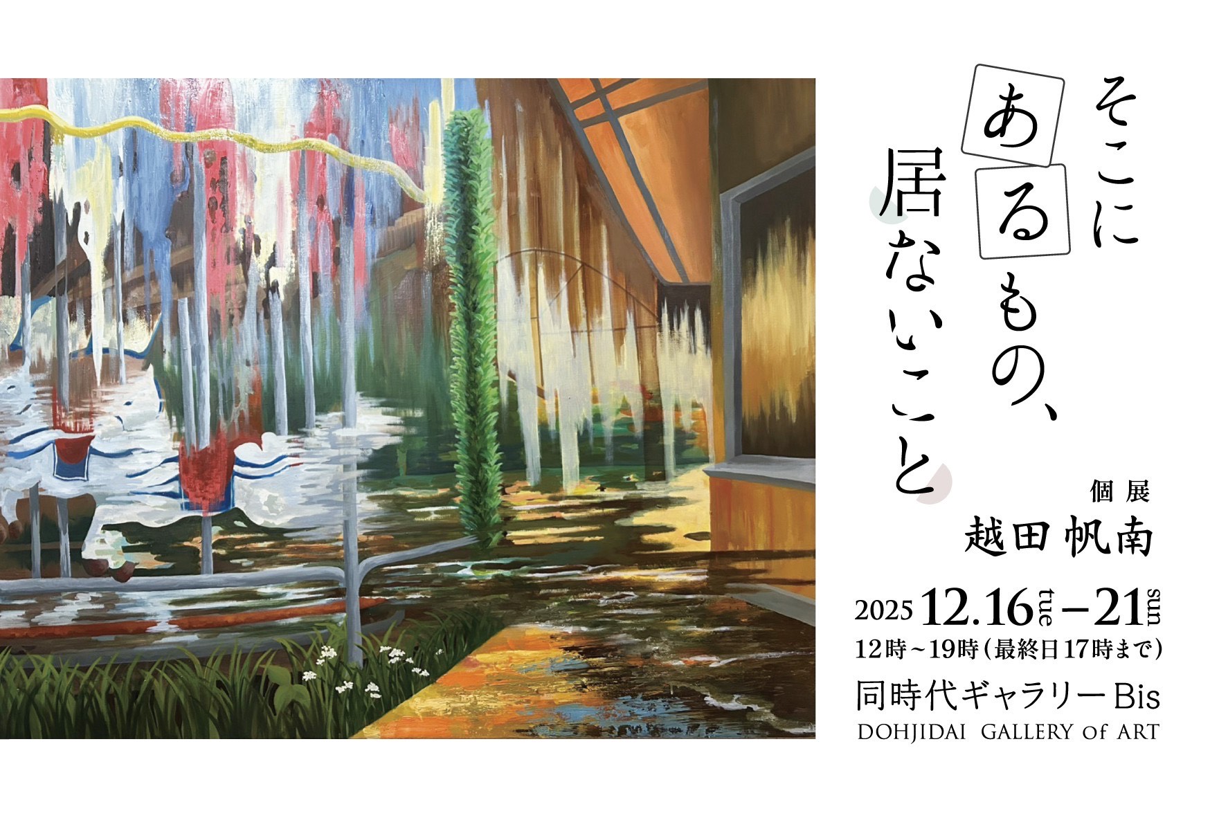 芸術学部洋画コース卒業生の越田帆南さんによる個展「そこにあるもの、居ないこと」が、京都三条通御幸町の同時代ギャラリーBisにて開催されます。ぜひご覧ください。