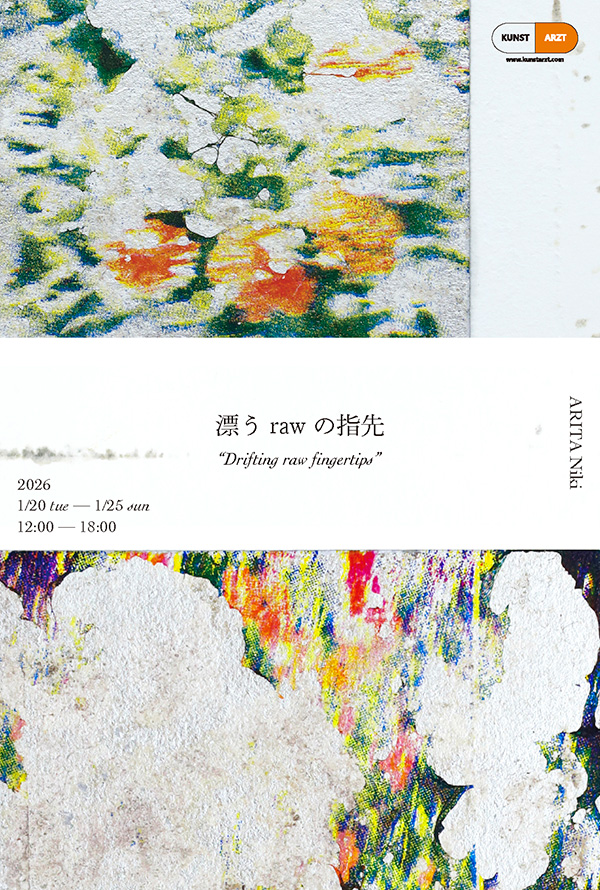 デザイン学部グラフィックデザインコース卒業生の有田西騎さんによる個展「漂うrawの指先」が、京都市東山区のKUNST ARZTで開催されます。この機会にぜひ会場に足をお運びください。