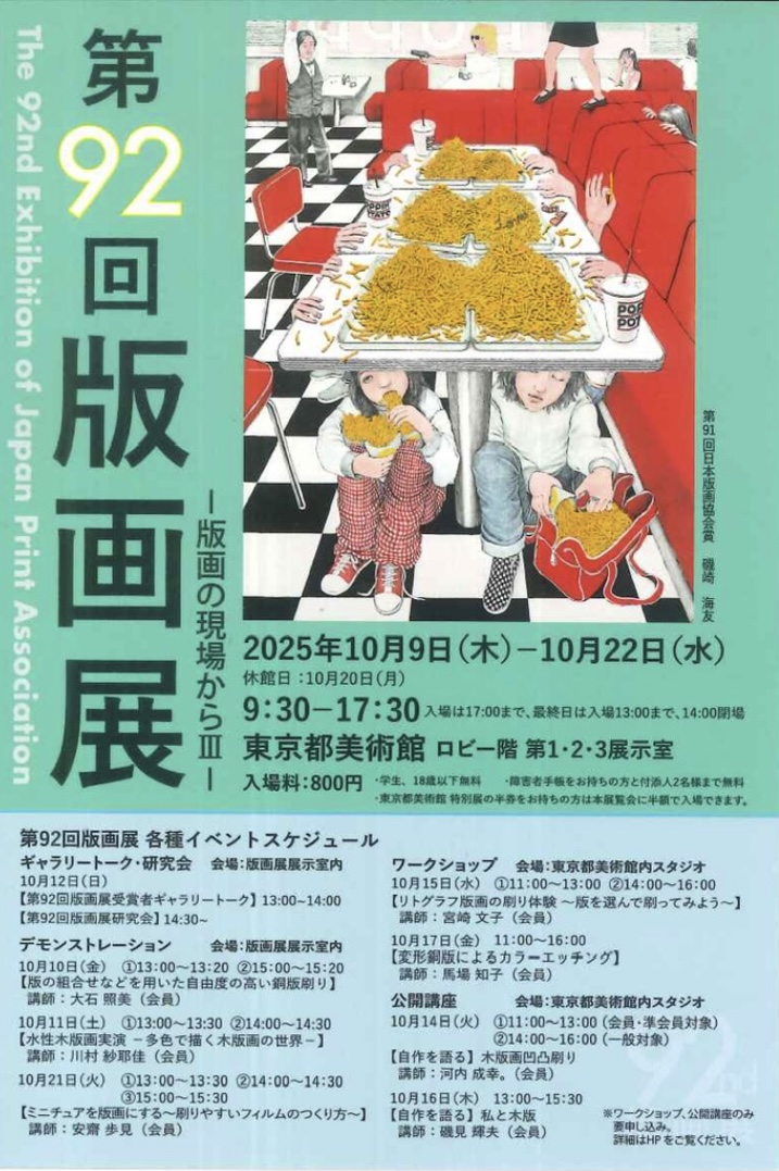 日本版画協会は、版画美術の復興を図るとともに、版画の国際的展観、美術学校に版画科設置の促進、新作版画の定期展観などを掲げ、1931年に発足された日本で唯一の職業的版画作家による絵画集団です。「版画展」は、協会発足年に第1回が開催され、今年で92回目の実施となりました。