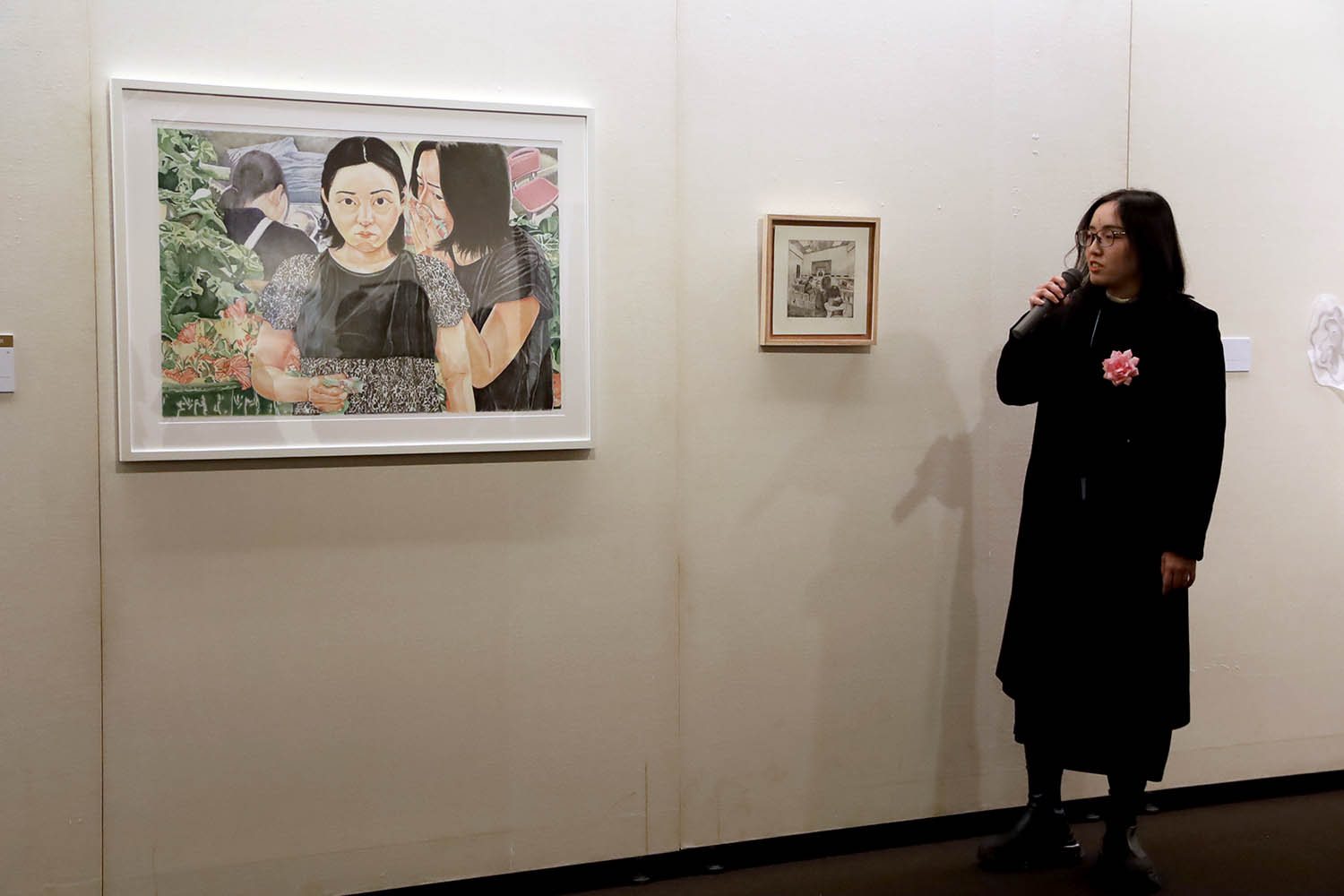 当日は、最優秀賞を受賞した山下茜里さん、優秀賞を受賞した松元 悠さんが、それぞれ自身の作品の前で、来場者に向けて制作の背景や作品に込めたコンセプトを紹介しました。