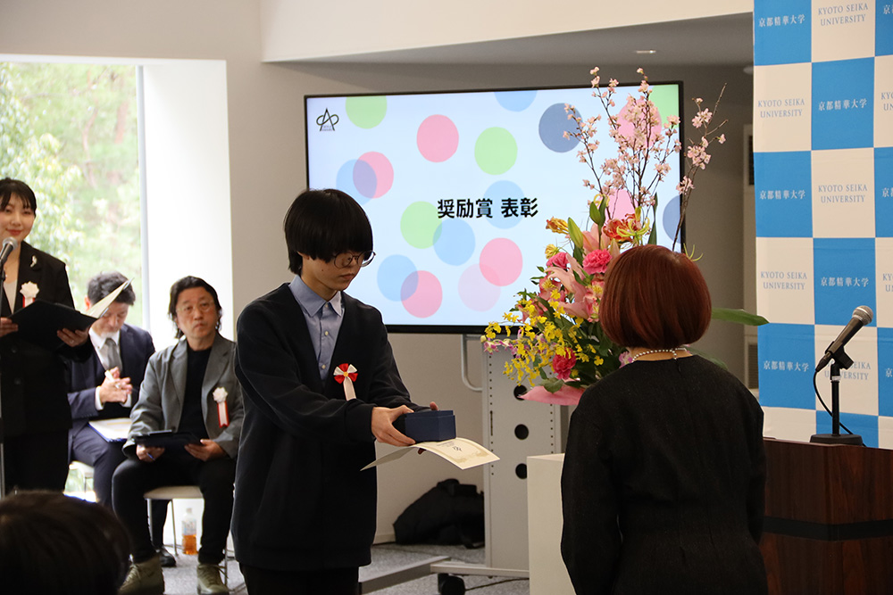 授賞式には、受賞者43名のうち13名が来学、11名がオンラインにて出席されました。式では受賞者から、受賞への思いと、これからの創作にかける意欲が語られ、未来への希望を感じる式典となりました。今後のみなさんの表現を応援しています。ご入賞のみなさまおめでとうございました。