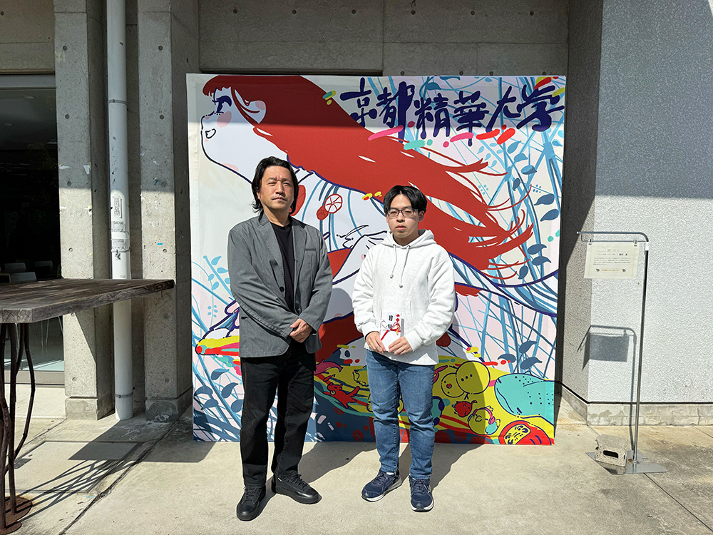 入学式や卒業式を彩る背景パネルデザインを在学生を対象に募集し、デザイン学部に所属する学生2名の案が採用されました。おめでとうございます!