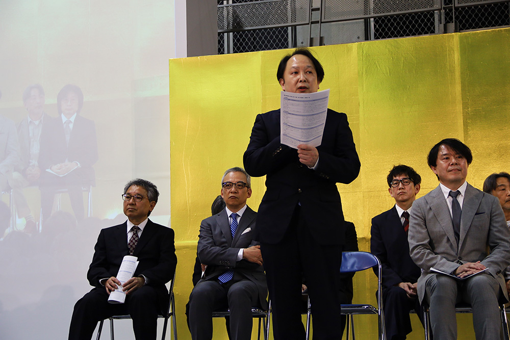 2026年度より新学長に就任した姜 竣学長は「この春、学長に就任したばかりの私も、みなさんと同じようにスタートラインに立っています。みなさんを迎えることができ大変嬉しく思っています。学ぶためにこの大学に集ったみなさんは、これから日々、形を読み、形取り、形を練り、形にすることに励むことになります。しかし、それだけでなく、画面の余白、コマの間白から文章の行間に至るまで、「間」についても学んでいくのです。ぜひ、間にも目を向け、沈黙にも耳を傾けてください。それでこそ、あなたらしい表現、かけがえのない表現者としてのあなたは、完成していくのです。」と新入生に歓迎と激励の言葉を述べました。