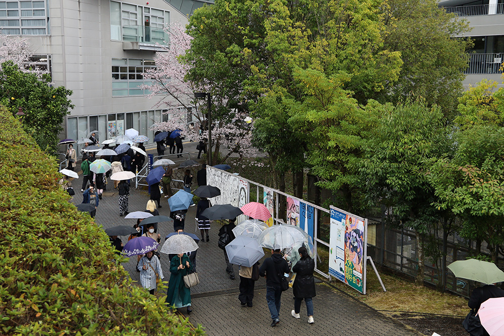 あいにくの雨天でしたが、式典後は会場外に在学生有志が集まり、クラブ・サークルの勧誘など、歓迎の催しが行われました。