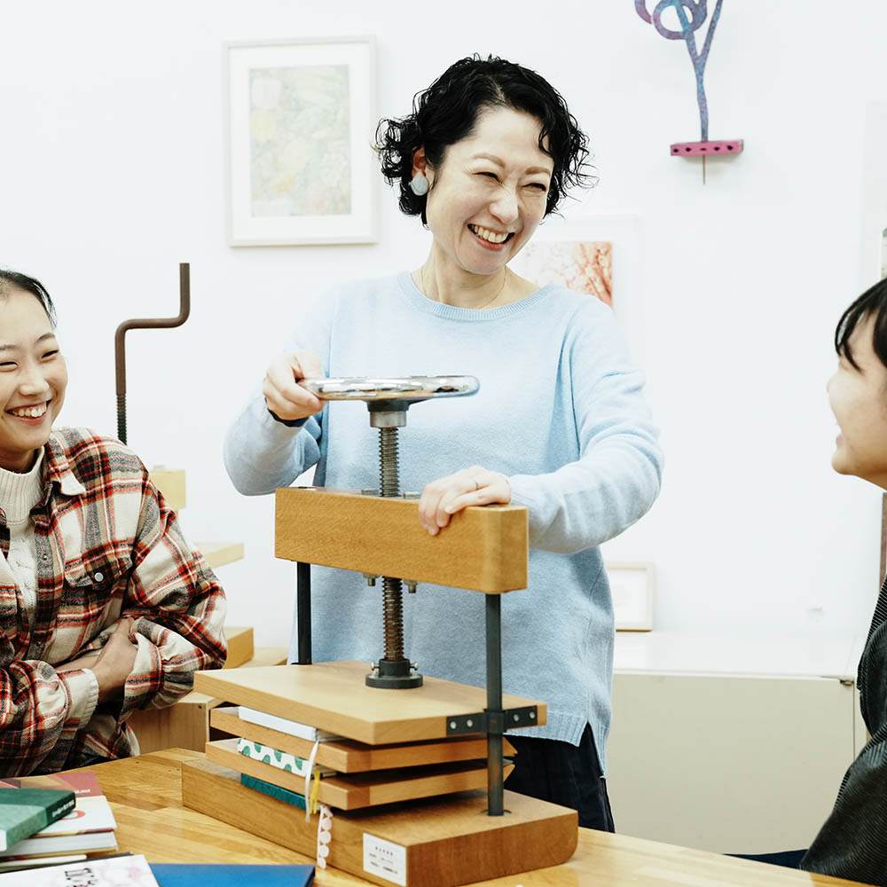 関心がある版画技法や写真表現を工房に分かれて学びます。あわせて、ブックアート、紙造形、デジタル表現、編集方法などへの理解も深め、自分に合う技法を探究していきます。