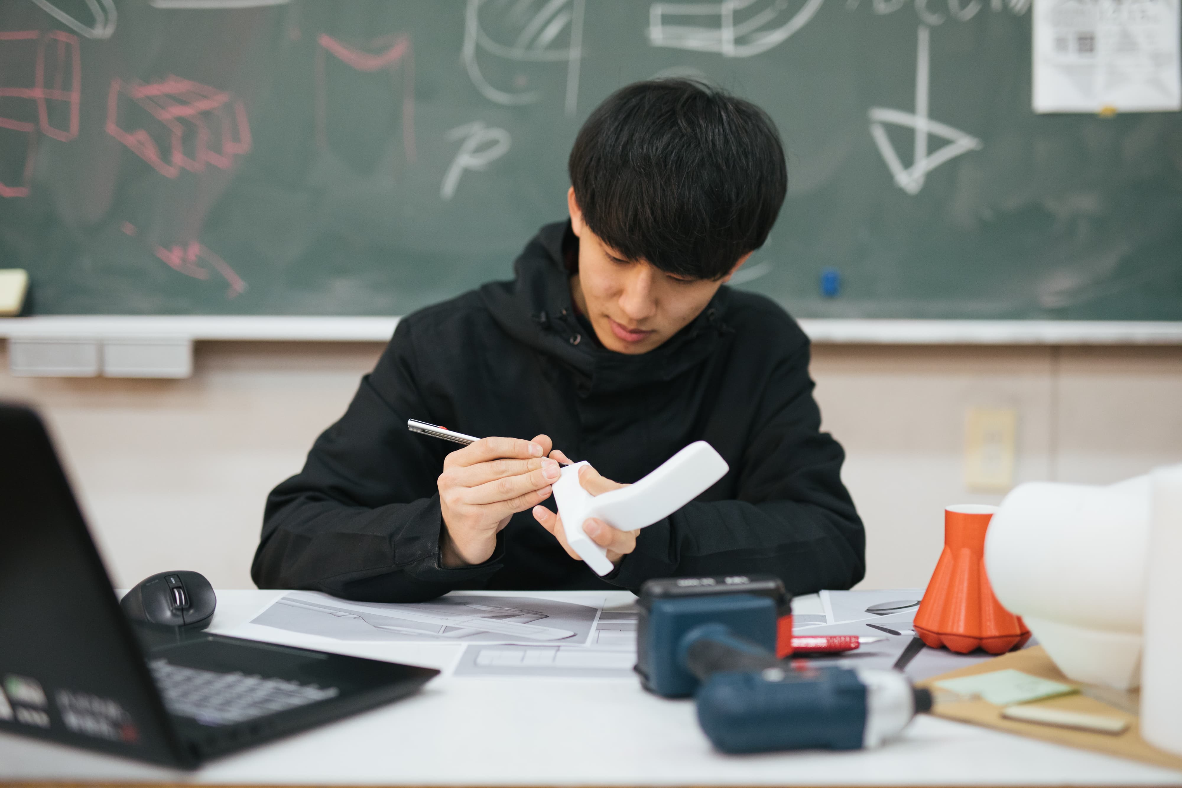This course nurtures the industrial designers who will create the appliances, vehicles, and everyday items that support our lifestyles and society in the future. Industrial design’s appeal lies in how the products that you create can be distributed and used by people around the world. In class, we study product materials, forms, and functions and learn how to conduct research to understand the needs of society and the process for coming up with new ideas. In addition, you will build the skills needed to use the latest software and hardware, such as 3D printers and Rhinoceros (3D modeling tools). Another feature of this course is that it often involves collaborations with private enterprises. Through these experiences, we hope to equip students with the planning capacity, production skills, and ability to understand socially responsive design.