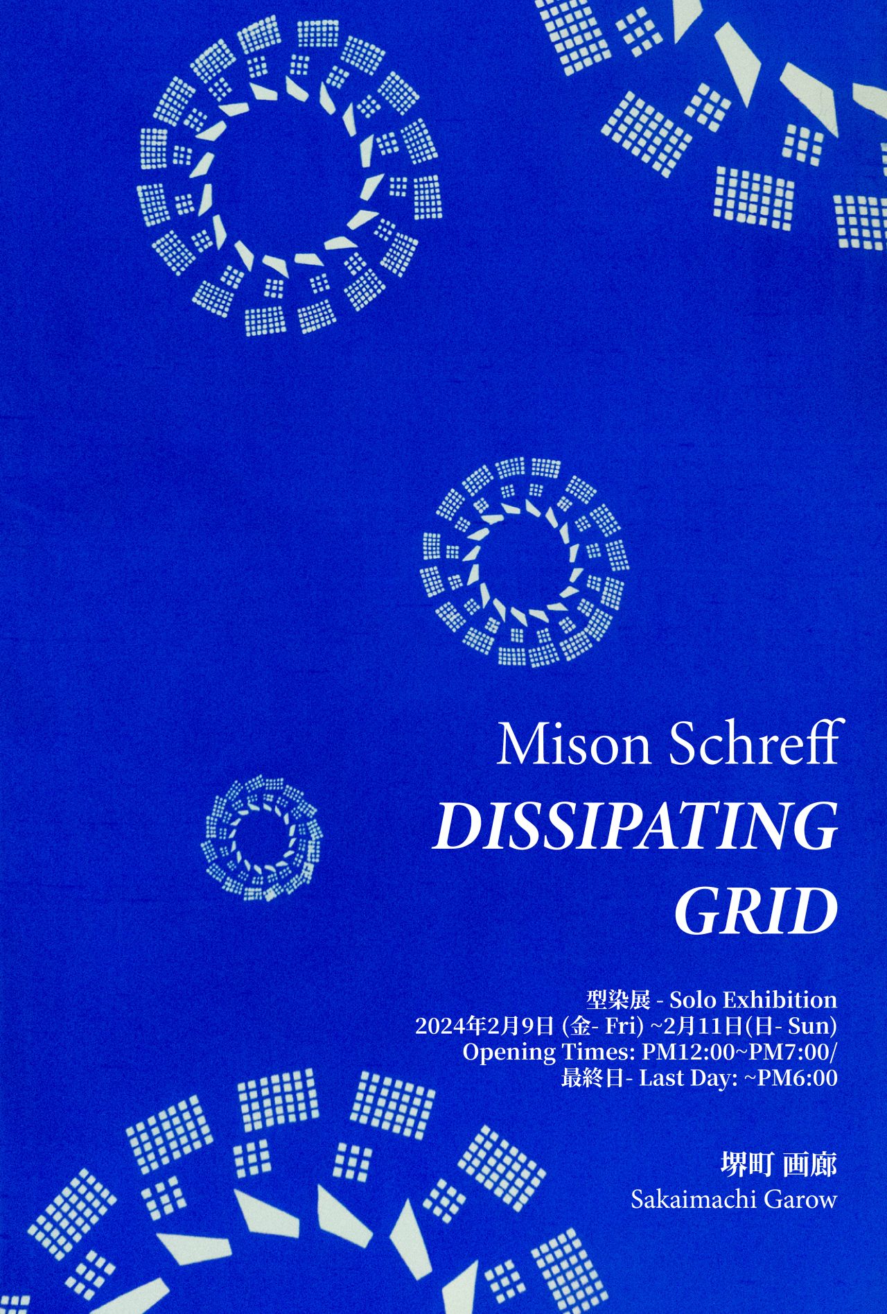 芸術学部テキスタイル専攻交換留学生 Mison Schreffさんによる個展「DISSIPATIND GRID」が、京都市中京区の堺町画廊で開催されます。