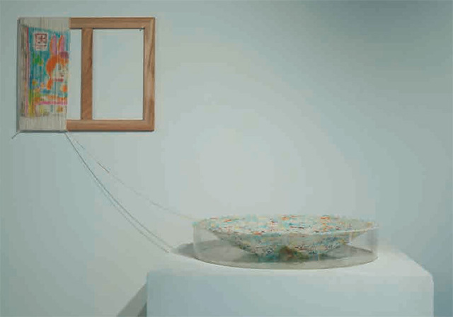 糸は解くこともできる。糸に描かれた像をほどき再構成することで、記憶の曖昧さや再生を表現する。
