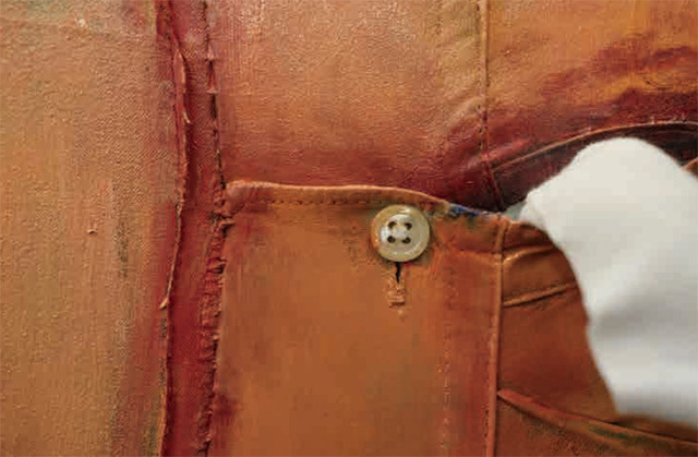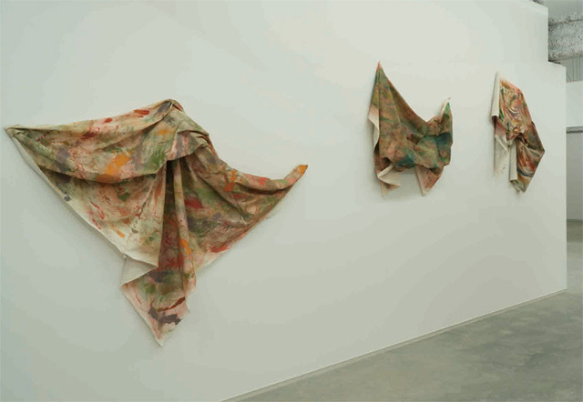 日常の中にあるモノや技術で作品を制作する。美術とは区別されがちな手芸に着目し、継いだ布をキャンバスにして絵を描く。