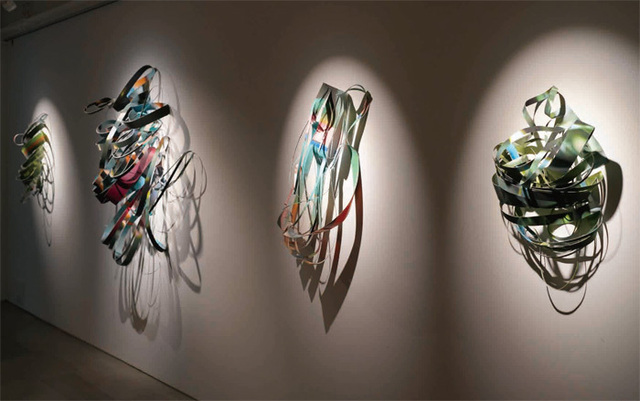 行為と紙が重なることで現れる像は色に還元され、湾曲もまた情報へと変換される。身近な日用品であるコピー用紙が、断片やずれを通して新しい視覚言語を立ち上げていく。
