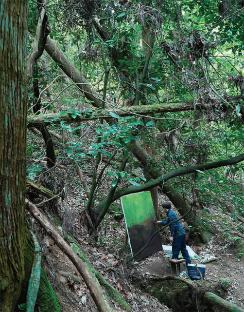 広大な森林を歩き、キャンバスと共に身を置くことで、うつろう時間そのものを描き出そうとしている。