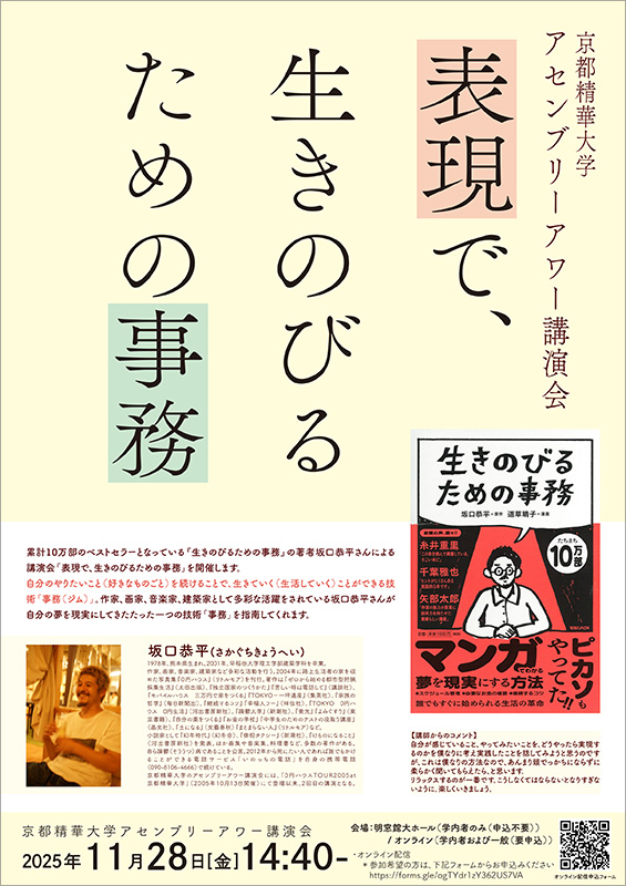 京都精華大学のアセンブリーアワー講演会は、「0 円ハウスTOUR2005 at 京都精華⼤学」(2005年10月13日開催)にて登壇以来、2回目の講演となる。