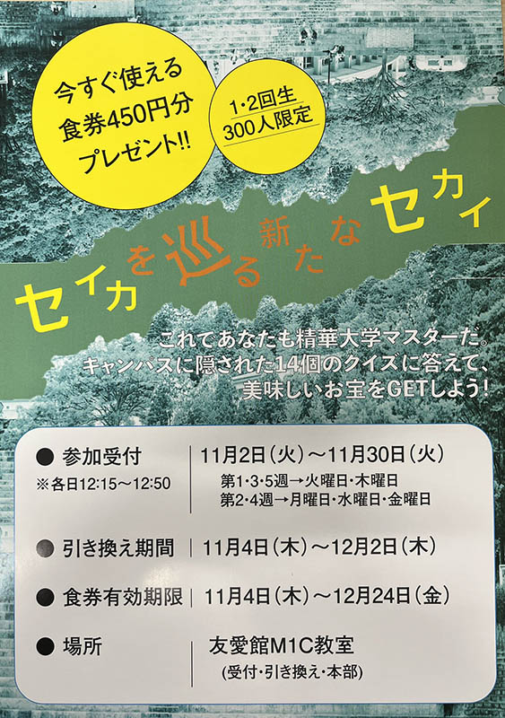本イベントは11月2日(火)より開催されます。1・2年生のみなさん、ぜひご参加ください。