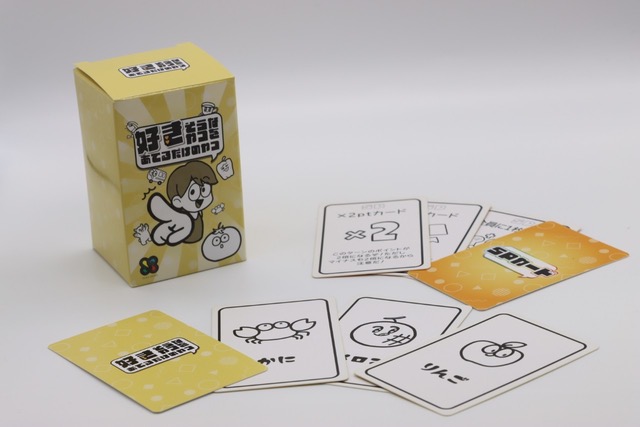 3~6人で遊ぶ、好きなものを当てあうカードゲーム。一人ずつに配布される、食べ物や動物などの絵が描かれた「ものことカード」から、他のプレイヤーが好きそうなものを選び、好きかどうかを質問します。当てられたプレイヤーがそのお題を好きなら+1ポイント、嫌いだったら-1ポイントと点数がつけられます。最終的に最も点数が高い人から順位がつきます。初対面の人とのアイスブレイクはもちろん、身近な人の意外な好みを知る機会になるかもしれません。