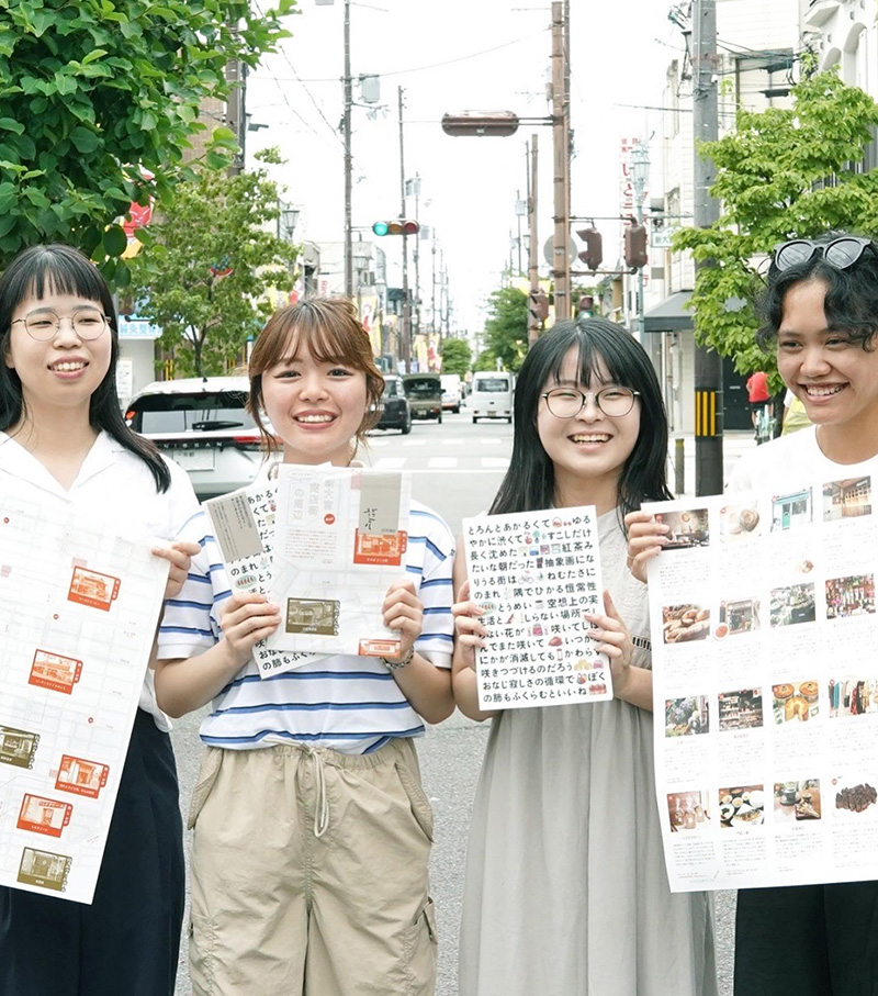 メディア表現学部メディア情報専攻の3年生 リム・フイニーさんが、京都市北区にある新大宮商店街エリアにフォーカスした情報誌『北に上ル』(+周辺MAP)の制作に参加しました。