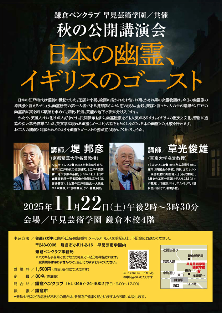 本学名誉教授で、江戸時代の怪談研究をしている堤 邦彦が、秋の公開講演会「日本の幽霊、イギリスのゴースト」に講師のひとりとして登壇します。
