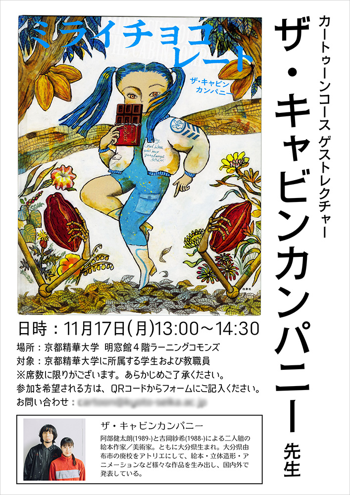 マンガ学部カートゥーンコースが主催する、二人組の絵本作家・美術家「ザ・キャビンカンパニー」をゲストレクチャーとしてお招きした特別講義を開催します。