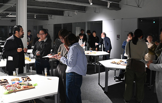 トーク終了後、レセプションパーティーを開催し、展覧会にご協力くださった教員や著作権者の方、来場者との歓談の場となりました。