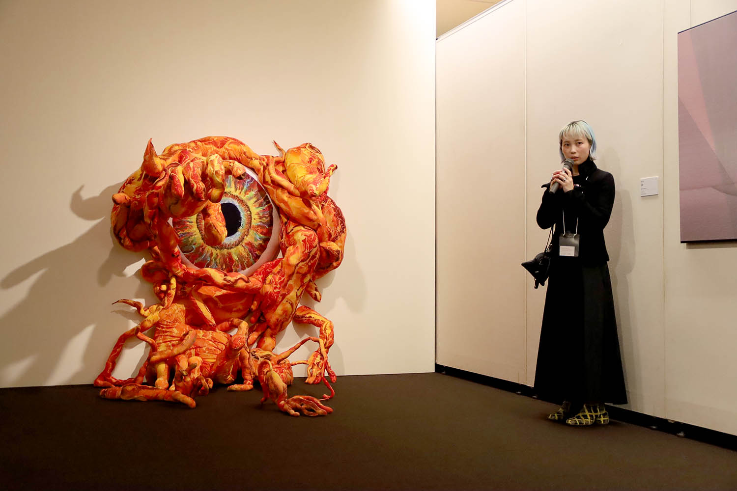当日は、最優秀賞を受賞した山下茜里さん、優秀賞を受賞した松元 悠さんが、それぞれ自身の作品の前で、来場者に向けて制作の背景や作品に込めたコンセプトを紹介しました。