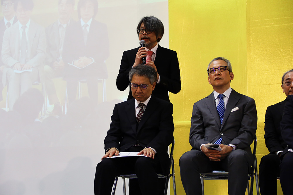 2026年度より新学長に就任した姜 竣学長は「この春、学長に就任したばかりの私も、みなさんと同じようにスタートラインに立っています。みなさんを迎えることができ大変嬉しく思っています。学ぶためにこの大学に集ったみなさんは、これから日々、形を読み、形取り、形を練り、形にすることに励むことになります。しかし、それだけでなく、画面の余白、コマの間白から文章の行間に至るまで、「間」についても学んでいくのです。ぜひ、間にも目を向け、沈黙にも耳を傾けてください。それでこそ、あなたらしい表現、かけがえのない表現者としてのあなたは、完成していくのです。」と新入生に歓迎と激励の言葉を述べました。