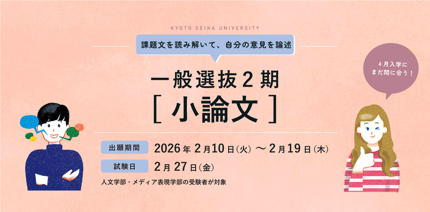 一般選抜2期の出願期間は2026年2月10日(火)0:00~2月19日(木)15:00です。受験を考えている方は、お早めに出願手続を行ってください。