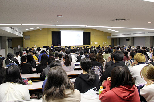 当日は3時間の講演予定でしたが、質疑応答だけでたっぷり1時間半も延長。次々に質問希望の手が上り、会場は大盛り上がりでした。学生たちは宮藤さんのお話に真剣に耳を傾けながらも、ときには爆笑が起こるなど、なごやかな空気に包まれた特別講義となりました。